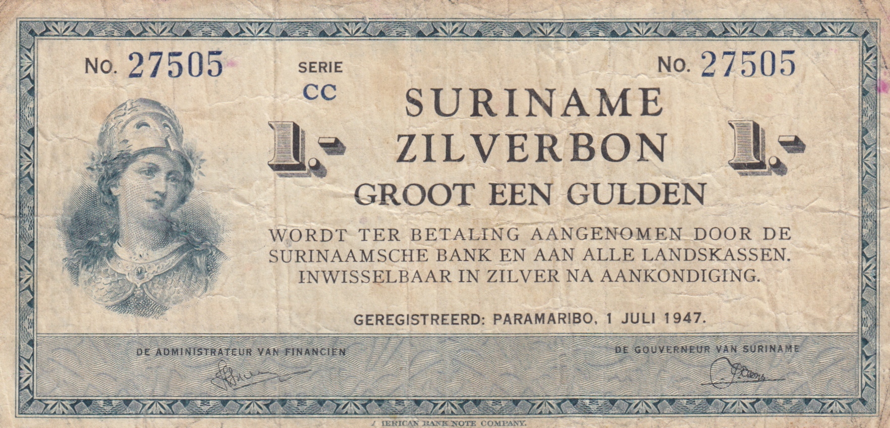- F-VF, , 1947 , ZILVERBON - SERIE CC, EUR 85,00
