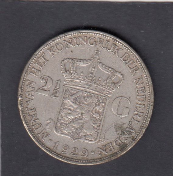 - VF, , 1929 2 1/2 Gulden WILHELMINA - 2 1/2 Gulden WILHELMINA , EUR