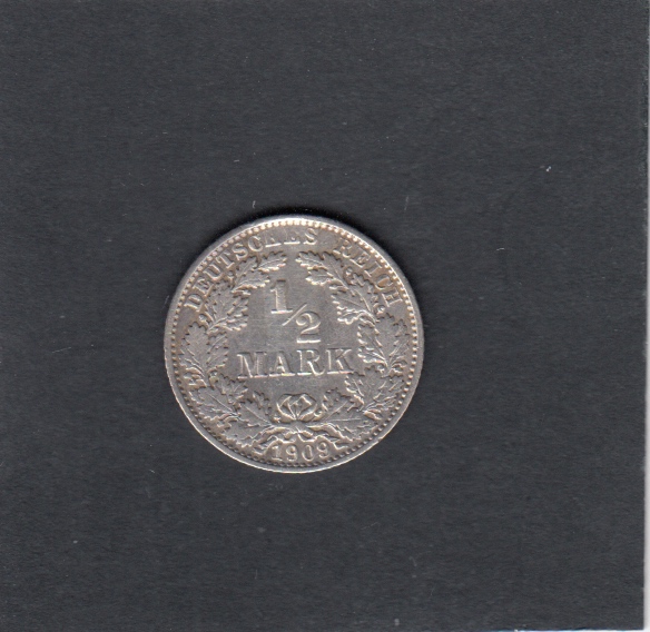 - XF-, , 1909E 1/2 Mark - 1/2 Mark, EUR
