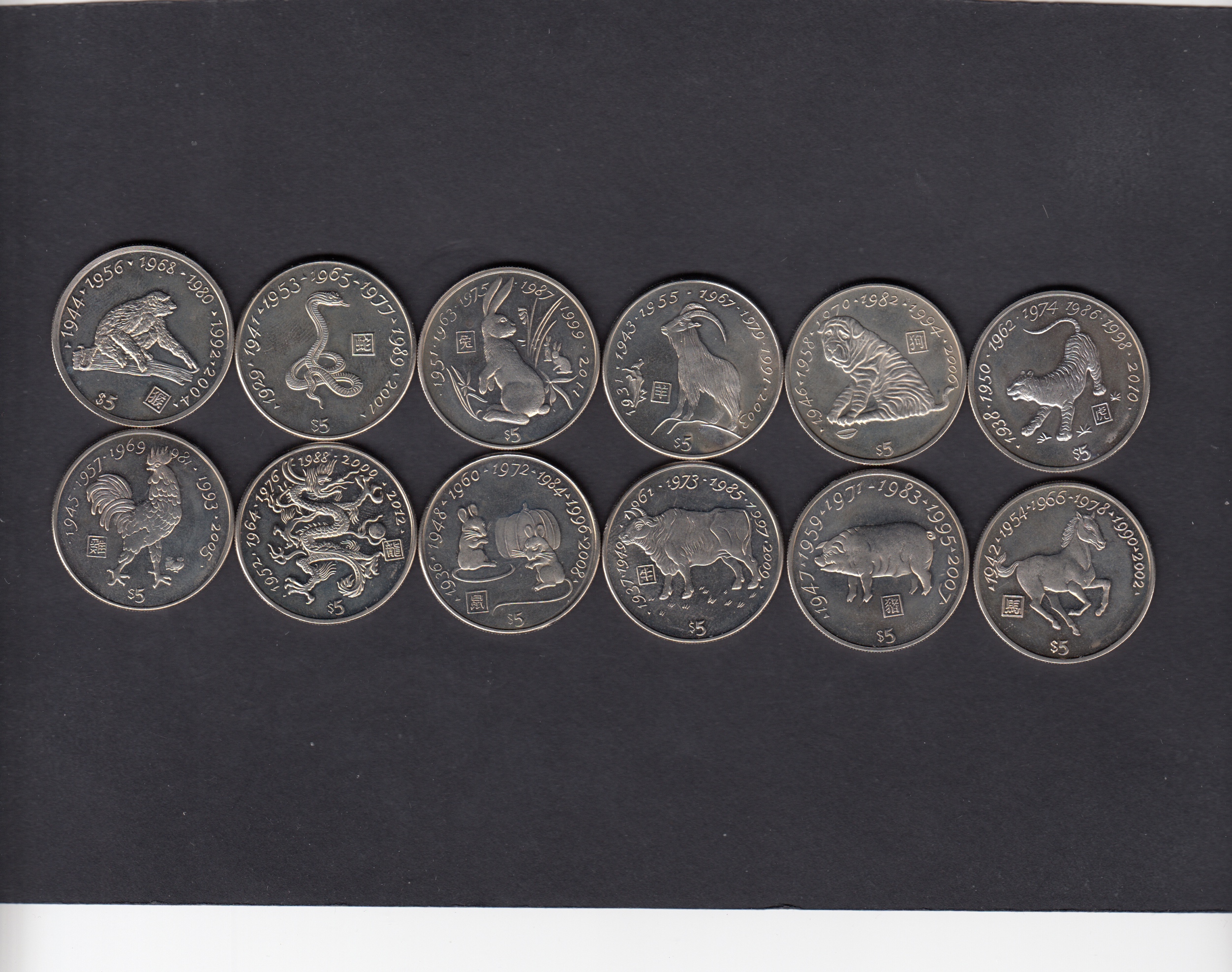 | KM.427-38 - UNC, , 2000 12 x 5 Dollars MILLENNIUM Zodiac - 12 x 5 Dollars MILLENNIUM Zodiac, EUR |