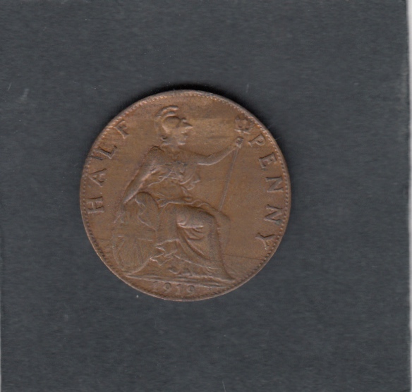 - XF, , 1919 1/2 Penny GEORGIUS V - 1/2 Penny GEORGIUS V , EUR