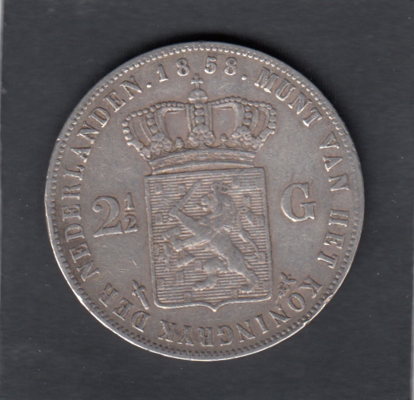 - VF, , 1858 2 1/2 Gulden WILLEM III - 2 1/2 Gulden WILLEM III, EUR
