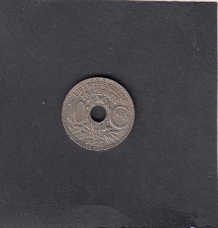 - XF-, , 1927 10 Centimes HOLE - 10 Centimes HOLE, EUR