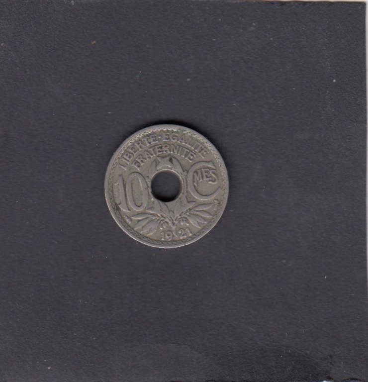 - VF, , 1921 10 Centimes HOLE - 10 Centimes HOLE, EUR
