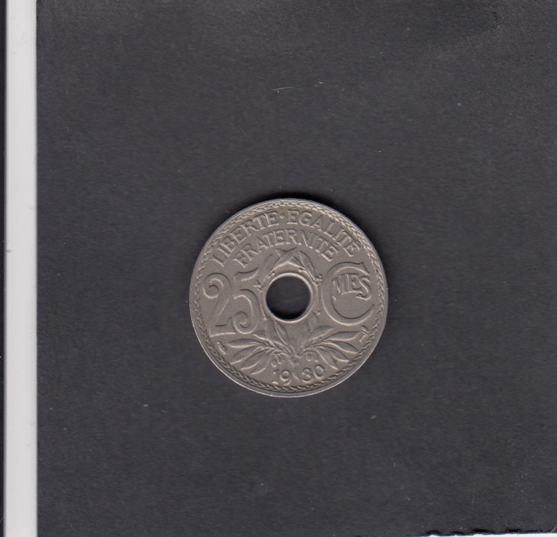 - VF, , 1930 25 Centimes HOLE - 25 Centimes HOLE, EUR