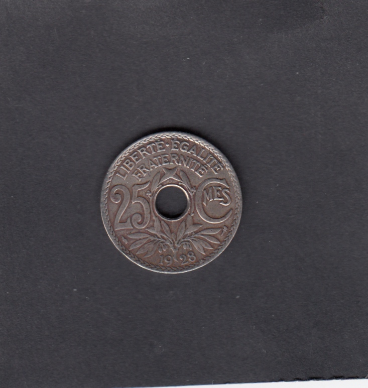 - VF, , 1928 25 Centimes HOLE - 25 Centimes HOLE, EUR
