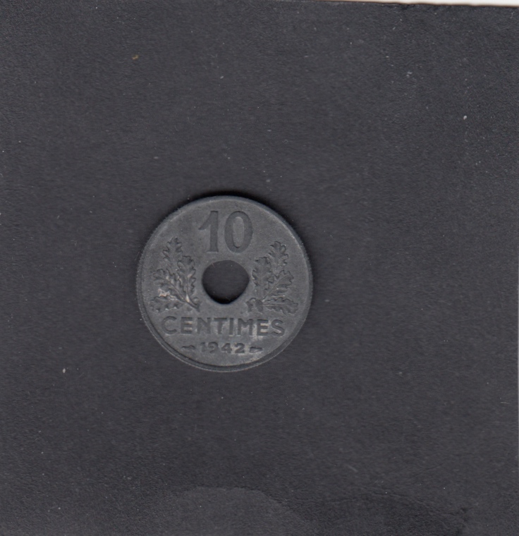 - XF-, , 1942 10 Centimes HOLE 1,3 mm - 10 Centimes HOLE 1,3 mm, EUR