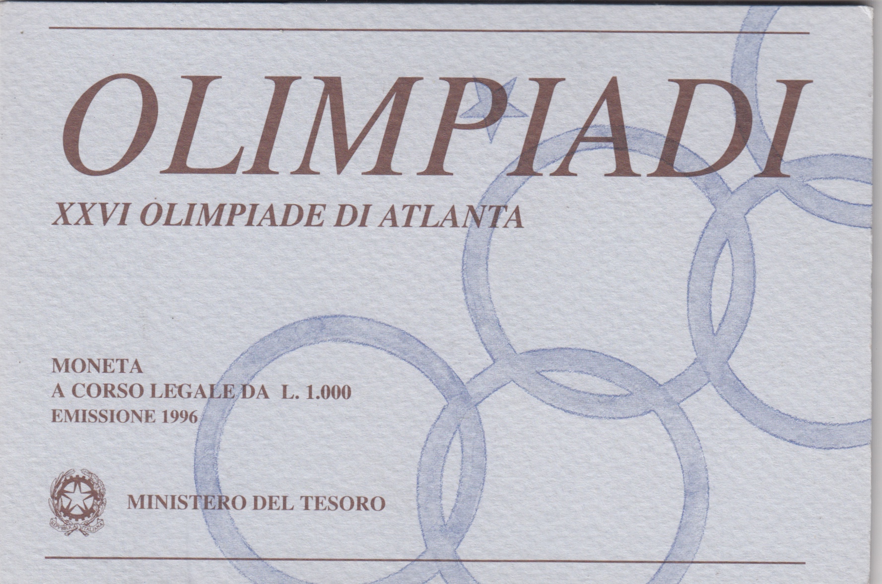 - BU, , 1996 1.000 Lire ATLANTA ORIGINAL PACKING - 1.000 Lire ATLANTA ORIGINAL PACKING, EUR